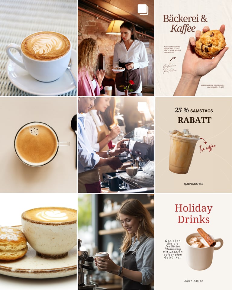 Ein traditionelles Familiencafé in Salzburg mit eigener Rösterei möchte auf Instagram sichtbarer werden – ohne seine alpine Authentizität zu verlieren. Ziel: mehr junge Gäste, mehr Story-Interaktion, mehr Reservierungen über Direktnachricht.